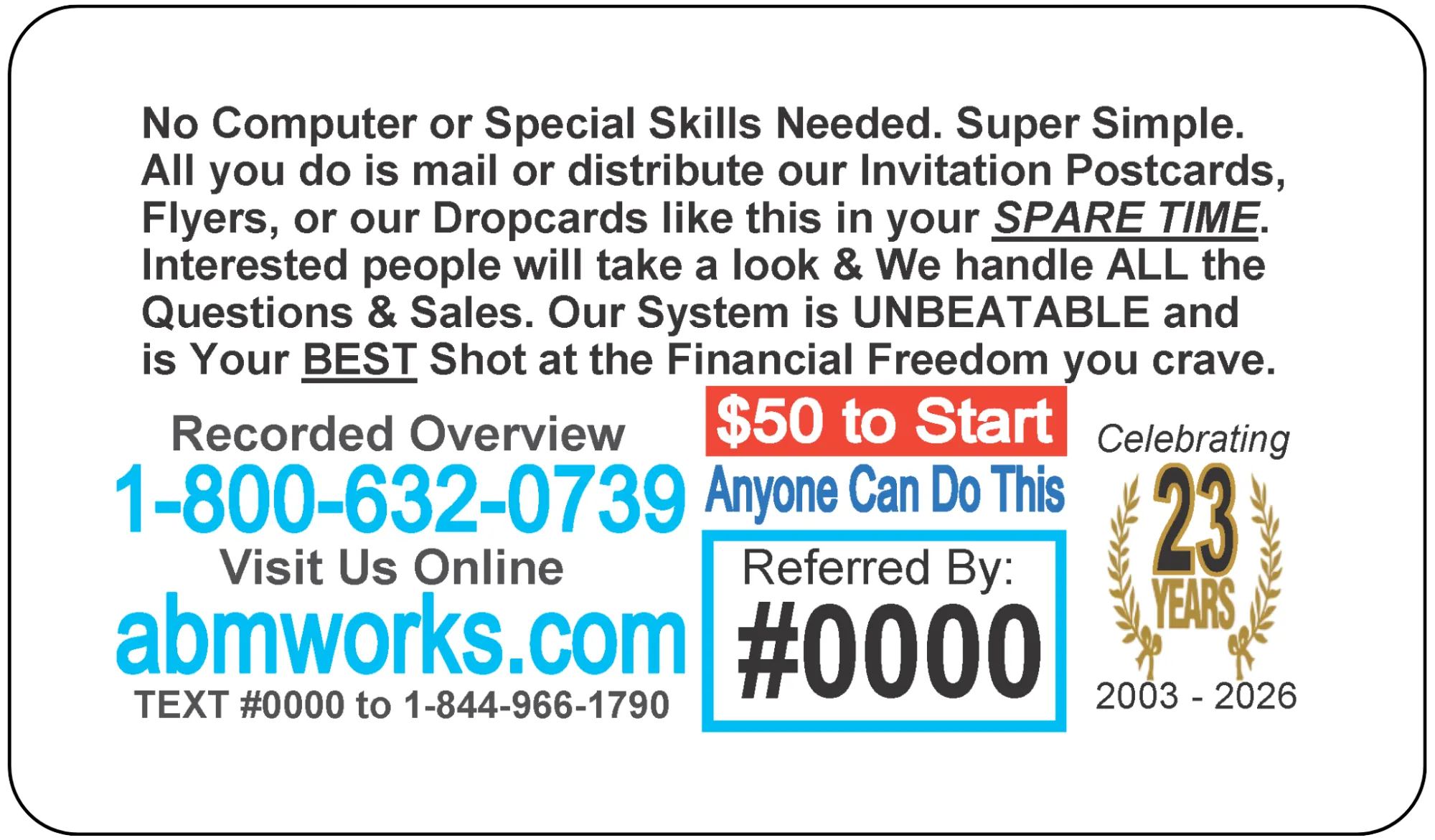 Hand them out. Leave them strategically. Share them anywhere appropriate. These compact, curiosity-driven cards are designed to spark interest and direct prospects straight into our automated marketing system.